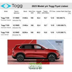 Togg fiyat listesi: T10X ve T10F Güncel Fiyatlar 2025